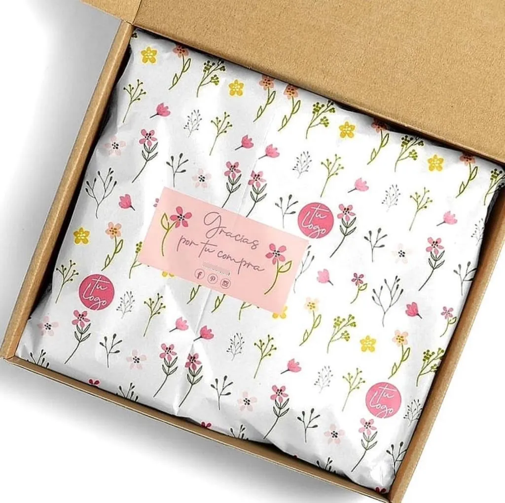 Eleve a apresentação da sua marca com papel de seda personalizado! Ideal para embrulhos de roupas, presentes, produtos delicados e embalagens de alto padrão. Fabricado com papel de seda 40g e impressão colorida em um dos lados, seu logotipo ou arte ganha destaque e elegância.